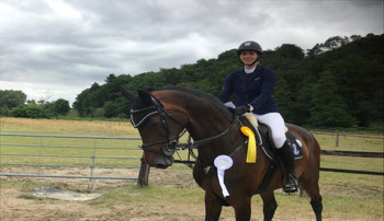 Bei ihrem „Heimturnier“ gab es für Sarah als Neu-Hellefelderin Platzierungen mit Calypso S in einer Springpferde M* (3. Platz), im Youngster M* (7.Platz) sowie mit Destiny Utah im M* (3.Platz) und im M** (2. Platz)!
